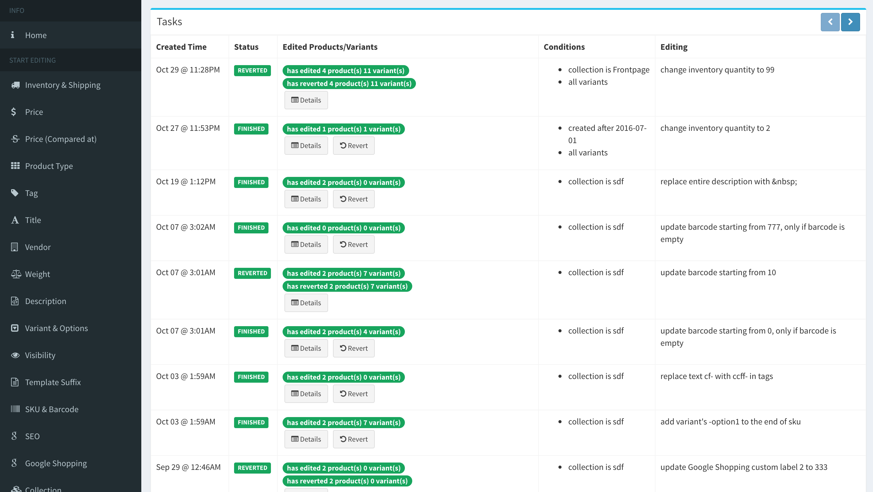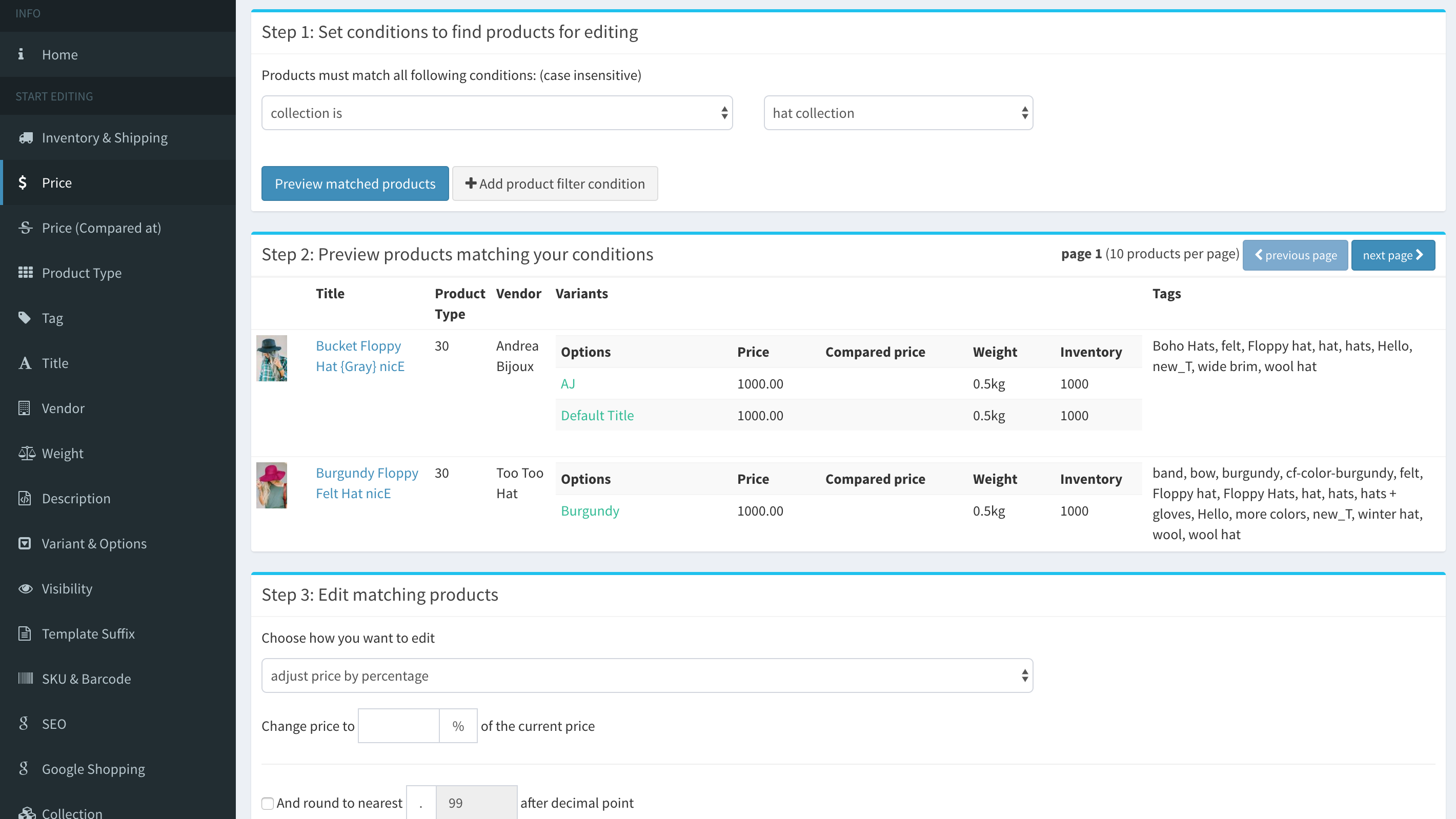 Shopify Spreadsheet Bulk Product Man age r is S h o pif y APP th at giv e s this type of interface you can edit mu ltip le pro du ct pro pe rtie s f as t h For example you can type > 100 to dis play v arian ts with price gre ate r th an 1 0 0 , o r f o r ... Return Doc